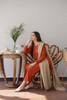 This elegant deep rust kurta from A.N Winter Edition'22 is crafted from luxurious Wool Mareena fabric, offering both warmth and style. The kurta features intricate resham and tilla embroidery on the neckline and sleeves, along with crochet loop buttons and a motif spray for added detailing. It is paired with matching culottes for a sleek silhouette and complemented by a contrast beige pashmina shawl (optional) for a touch of sophistication. This 3-piece set (Shirt, Culottes, and Shawl) combines traditional craftsmanship with modern elegance. 100% Original Fabric - Authenticity Guaranteed.