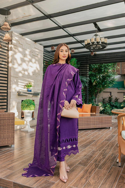 The Baraekhanom Winter Edit'22 ensemble is a perfect blend of comfort and elegance. The shirt is made from pure cotton khaddar, providing warmth and breathability, while the matching pants in pure cotton khaddar ensure a cozy fit for the cooler months. The cotton net organza dupatta adds a delicate touch of sophistication, beautifully completing the look. Ideal for winter wear, this outfit combines traditional craftsmanship with modern style, making it a versatile and timeless piece. Authenticity Guaranteed – 100% Original, ensuring top-notch quality and design for your wardrobe.