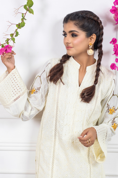 Lemon Chikan Kurta with Redefined Laces | Faiza Rehman