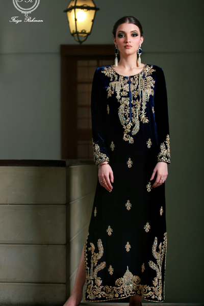BCATCOUS Green Velvet Shirt | Faiza Rehman | Bilal Garment