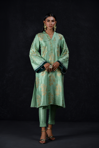 MINT ROSE Raw Silk Mint Green Kurta | Faiza Rehman