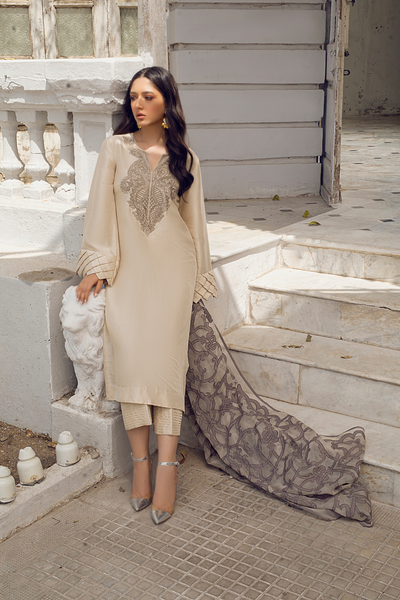 FIONA Ivory Raw Silk Ensemble | Faiza Rehman