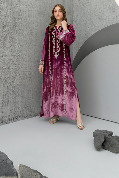 KAFTANS - VELVET VELOUR'24- ROSE (2PC) | bilalgarments