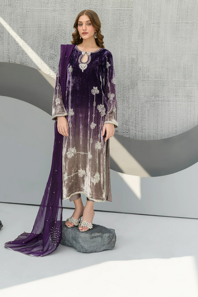 FLAIRS STUDIO - VELVET VELOUR'24- GREY GRAPES (3PC) | bilalgarments