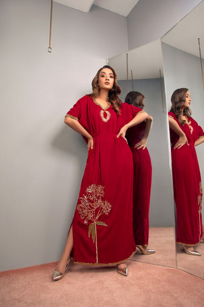 LAKHT Hand Zardozi Embellished Velvet Kaftaan