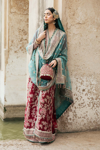 Embroidered Dupatta Ice Green (Organza) 2.50Meters Embroidered Dupatta Pallu Ice Green (Organza)2.30Meters Embroidered Neck Left & Right Embellished (Organza)1.00Piece Embroidered Front Jall (Organza)1.50Meters Embroidered Back Center Panel (Organza)1.00Piece Embroidered Back Spray (Organza)1.50Meters Embroidered Sleeves Border (Organza)0.78Meters Dyed Sleeves Extensions (Organza)0.45Meters Embroidered Neckline Jacket & Side Extensions Border (Organza)11.94Meters Embroidered Front & Back Hem Border (Organza)1.66Meters Embroidered Trouser Border (Organza)2.03Meters Dyed Trouser (Korean Silk)2.25Meters Printed Finishing For Shirt (Satin Silk)1.35Meters Dyed Inner (Thai Silk) 2.75Meters