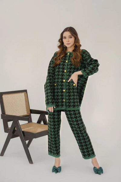 DEFNE GREEN HOUNDSTOOTH SUIT | bilalgarments