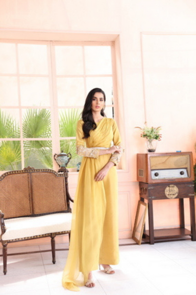 MISHA Mustard Raw Silk Jumpsuit by IMRA SAEED