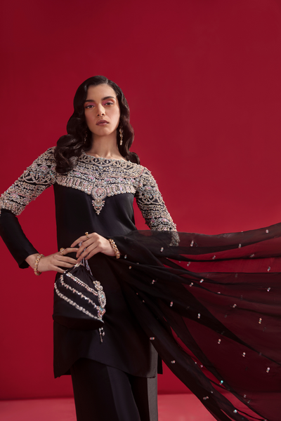 VIVIEN black  Raw Silk Suit by Kanwal Malik