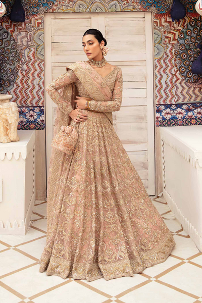 This captivating ensemble is a masterpiece of elegance and artistry. Crafted from organza fabric with floral designs, the attire boasts a classic silhouette enhanced by a lavishly embellished and meticulously handcrafted lehenga. The choli features intricate linear patterns with ornamental accents, adding to the charm. A stunning organza dupatta with intricately embossed borders and a sequin spray completes the look, making it ideal for festive occasions. Part of Kanwal Malik's Vistas Of Jaipur'23 collection, this outfit guarantees 100% authenticity and radiates timeless sophistication.