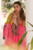 The Rimsha Kameez Pajama from Mohsin Naveed Ranjha Shaadi Collection'23 is a striking combination of Rajasthani pink and dhani green, crafted from luxurious raw silk. The shirt features colorblocked jamawar panels with intricate embroidery on the neckline, including traditional adda work, golden sequins, and metallic trims. The ensemble includes a traditional pajama made from coordinating green and pink jamawar, with raw silk applique accents. Paired with a cham cham pink organza dupatta, it is adorned with multi-head embroidered bird motifs, sequins, and trims for a regal, festive look.