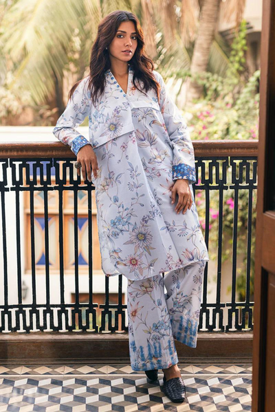 Mushq Wisteria's Basic Winter Pret '23 collection presents a mesmerizing creation, where an enchanting aqua canvas is brought to life with intricate floral motifs. The delicate blossoms in shades of white, pastel pinks, and subtle hints of green form a captivating tapestry, showcasing the beauty of nature with meticulous precision. This piece effortlessly combines elegance with the charm of floral artistry, making it a timeless addition to any wardrobe. Authenticity guaranteed.
