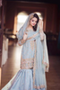 This refined ensemble from MWK Bridal Collection exudes timeless grace. The organza shirt and dupatta are beautifully hand-embellished, showcasing intricate craftsmanship. Paired with a raw silk farshi gharara, the outfit achieves a harmonious blend of elegance and tradition. Perfect for grand occasions, this meticulously designed attire highlights sophistication through its luxurious fabrics and artisanal details. Authentic and thoughtfully crafted, it captures the essence of opulence and charm, making it an ideal choice for anyone seeking a standout, yet classic look.