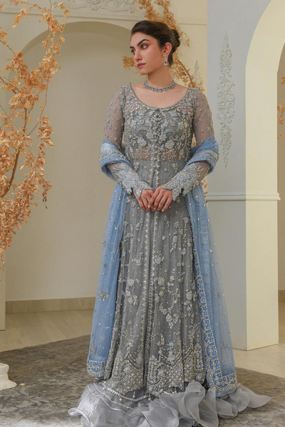 Intricate zardozi and kaamdaani mesh together beautifully this elegant peshwas is the perfect valima look for the coming wedding season.