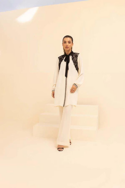 THEA Ivory Chantilly Lace Shirt by Sana Abbas La Fiesta