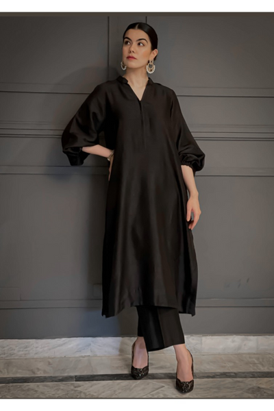 SOLIDS-BLACK Raw Silk Solids | Hand-Embellished Pockets