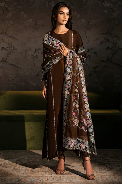 Shazia Rauf Khan Formal- Late Checkout presents a stunning ensemble featuring hand-done crystal embellishments on both the front and back, adding a touch of sparkle and luxury. The heavy hand-embellished dupatta further enhances the elegance of the outfit, making it a true statement piece. Crafted from 80gm pure raw silk in a soft nude blush color, the fabric offers an exquisite sheen, while the organza dupatta adds fluidity and grace. Authenticity is guaranteed, ensuring that this 100% original design is a perfect choice for sophisticated, formal occasions.