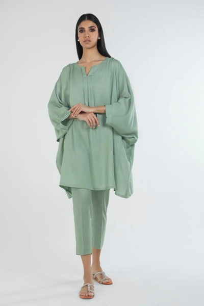 Description: Outshine your ever green personality in this green hued baggy shirt completed with pockets and pleats. It comes with a matching pants to complete the look.