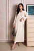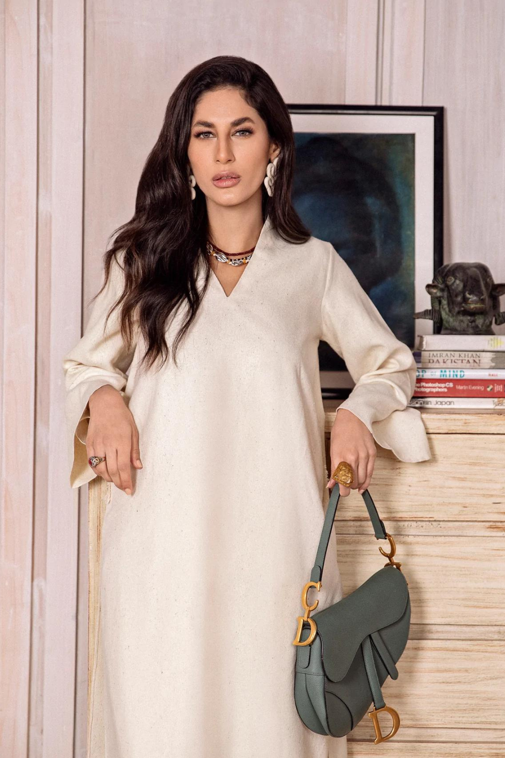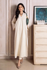 Tara from Zainab Zulfiqar Fall Winter '22 is a graceful off-white set crafted from pure karandi, exuding timeless elegance. The long shirt features a subtle no-show ban collar, rounded sleeves adorned with delicate pearls, and chic fringed pockets for a modern twist. Paired with straight cigarette pants, this ensemble offers a perfect balance of classic design and contemporary detailing. Ideal for effortless winter sophistication.