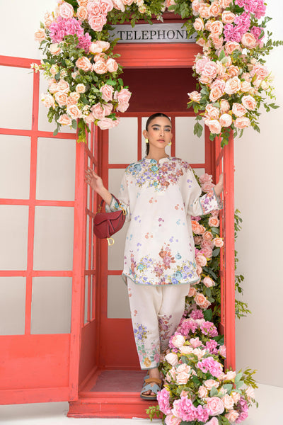 Flowers is a stylish ensemble featuring a boxy-cut shirt paired with a sleek, skinny shalwar. Crafted from crease-free fabric, it ensures a polished and sophisticated look all day long. The shirt is adorned with an intricate fusion of flowers and artistic patterns, creating a rich, textured design that exudes effortless charm. Perfect for those who appreciate bold yet elegant statement pieces, this ensemble effortlessly blends comfort with style.