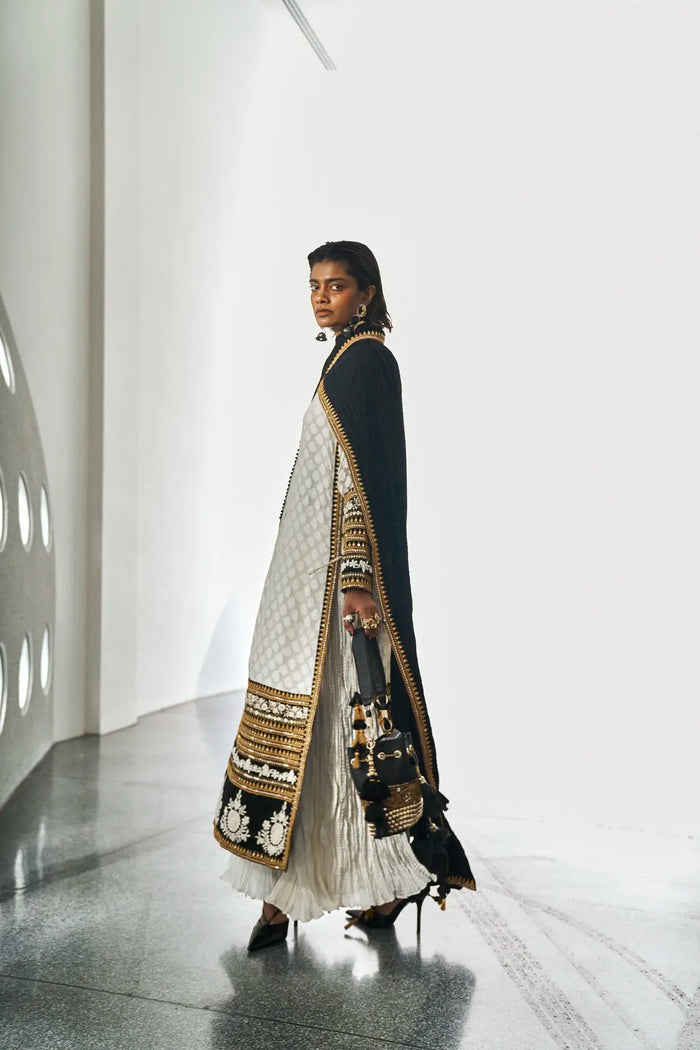 Bottoms: White crushed dhaka pajama made with grip silk.