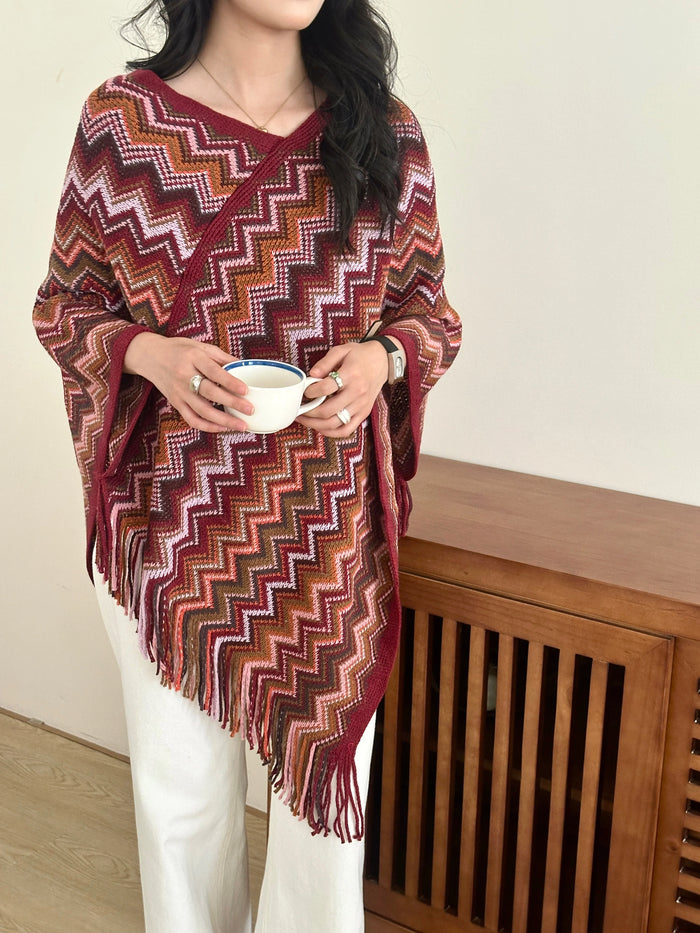 New In '25 - Kai Zig Zag Chevron Knitted Cape