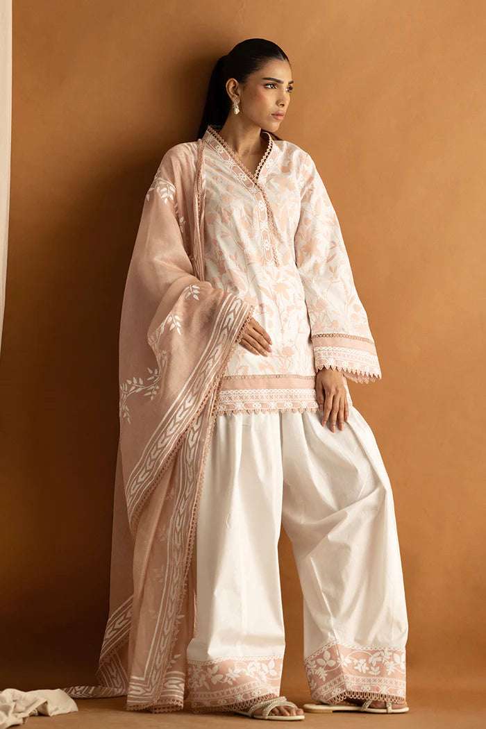 This elegant white pure cotton kurta, inspired by the beauty of a botanical garden, showcases our signature screen print with intricate detailing. The delicate prints bring the natural world to life on the fabric, offering a fresh and vibrant aesthetic. Paired with a white cotton farshi shalwar, the ensemble exudes timeless charm and comfort. Complemented by a cotton-net screen printed dupatta with fine finishings, this outfit is the perfect balance of intricate artistry and relaxed sophistication, making it ideal for both casual and semi-formal occasions.