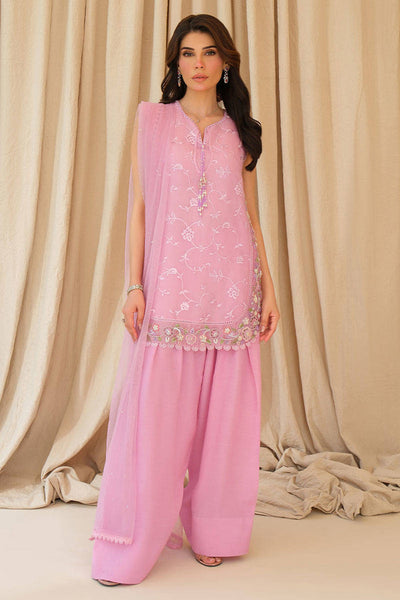 Delicate and radiant, Noorani is crafted in embroidered organza, adorned with intricate handwork featuring resham florals, pearls and pastel sequins for a soft shimmer that catches light with every movement. Paired with a trending elvish silk farshi shalwar for regal flow and a hand-embroidered net dupatta, this lilac ensemble is the essence of feminine grace—fresh, festive, and effortlessly dreamy.