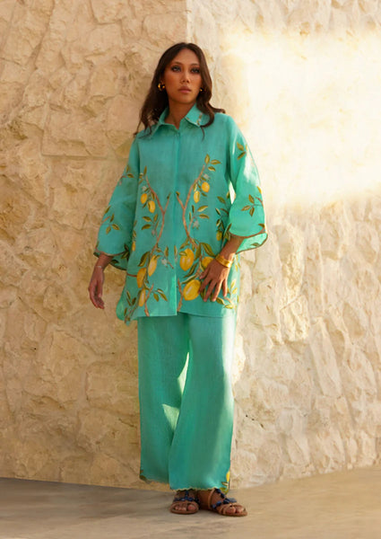 Breezy elegance meets vibrant charm in the Camila Turquoise Linen Set — your perfect companion for sun-soaked adventures. Designed with airy kimono sleeves and intricate scalloped detailing, this ensemble radiates effortless sophistication. The bold, vibrant hue makes a statement on its own, inviting a minimalist approach to accessories. Its versatile, button-down design easily transforms into a breezy cover-up, ideal for layering over your favorite swimwear. Whether you're strolling through coastal streets or lounging poolside, this set is your ultimate go-to for leisurely, warm-weather escapes.